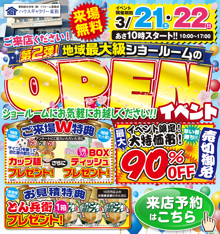 仙台市泉区・富谷市のリフォームは ハウスギャラリー東和にお任せください 皆さんこんにちは! ハウスギャラリー東和 泉・富谷ショールームにて 【水回り4点セットキャンペーン】 をご好評につき延長で開催いたします!! WEBから来店予約または見積依頼をいただき 水回り4点セットのご契約いただくと 今だけ限定で 人気の家電2万円分 をプレゼント! さらに東和総合住宅の水回り4点には 【無料】商品10年保証付き! となっております! 予約フォームは下記にございます。 ぜひショールームで見て、触れて、体感してみてください。 お気軽にご来場ください♪